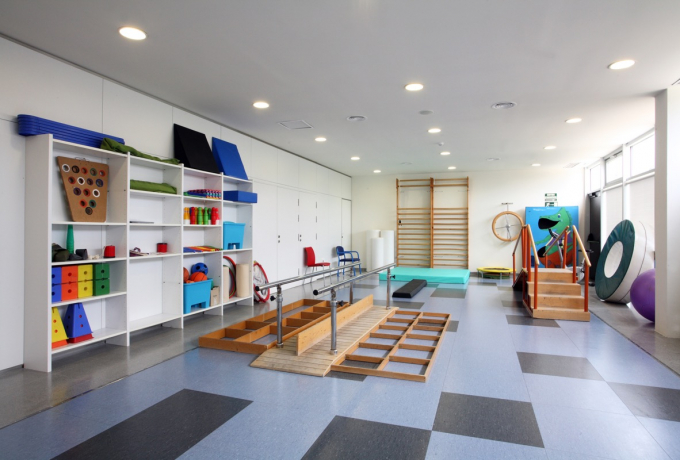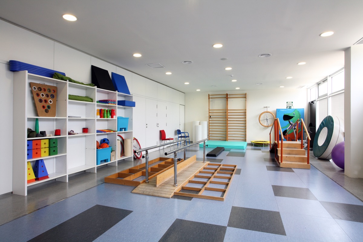 Gimnàs i sala de motricitat - Cinema - Sala de teràpia ocupacional - Dues sales Snoezelen - Espai de teràpia amb animals - Box d'infermeria a cada planta - Menjadors i sala d’estar - Jardí.